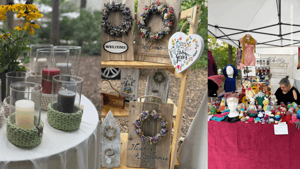 Wer Lust auf einen Bummel hatte, konnte den Handwerkmarkt entdecken. Zehn Aussteller präsentierten hinter dem Heimathaus ihre liebevoll hergerichteten Stände mit Handwerkskunst, Dekoration und regionalen Produkten.